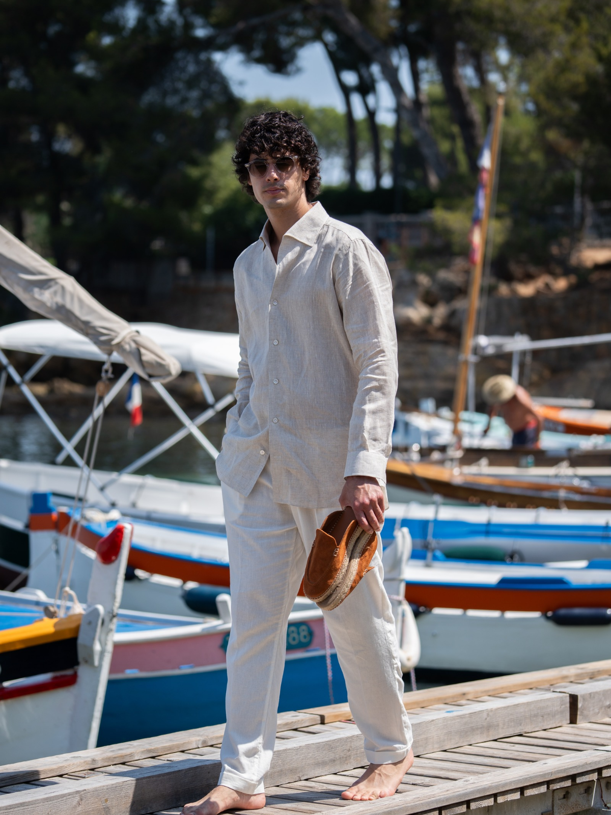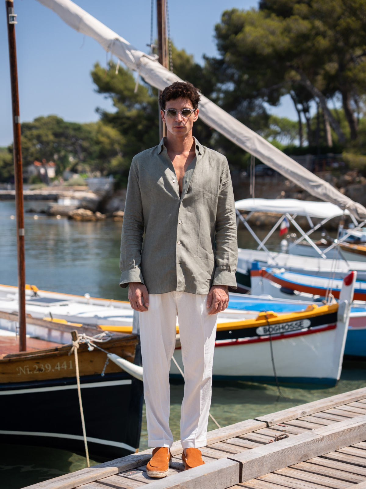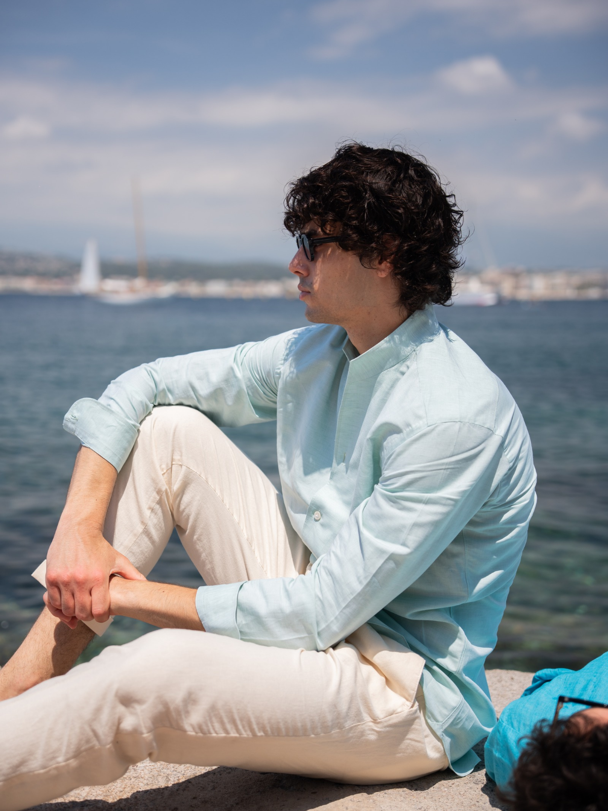 Where warm light runs fast across the water. Bold boat escapes meet salt-kissed pastels, our cotton-and-silk drop in motion, handmade in Naples shirts, and new sunwear built for speed.